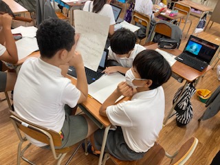 6年生の子どもたちが学級でプレゼンテーションをするようです。テーマは[修学旅行をよりよいものにするために仲間と協力して三重県の良さを調べよう]です。せっかく行く修学旅行なので、事前学習の一つとして旅行先地域の観光や特産物、特色などを調べて、クラスでプレゼンし合おう]という取り組みです。実際に行く場所の紹介はもちろんですが、三重県は歴史や文化も豊富な地域です。他の地域に興味を持って知識を広げていくことはとてもいいことだと思いました。