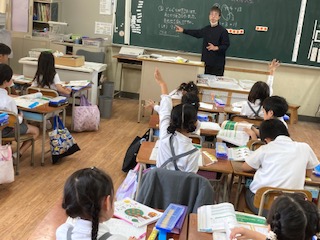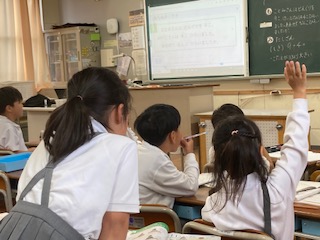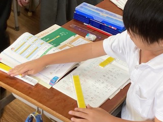 運動会も終わって切り替えも大事です。1年生の子どもたちが算数の授業で、たし算の勉強をしています。[どんぐりを9こと、4こひろいました。あわせてなんこですか。]…9+4の計算の仕方です。答えが10よりも大きな数になります。さてどうしよう?みんなで意見を出し合います。おはじきブロックも使います。『9はあと1で10だから…』『4を1と3にわけて…』『9に1をたすと10になるから…』『10とのこりの3で…』『こたえは13です』。なるほど、こんなふうに考えることができるね。『みんなでもう一度確認しながら一緒に考えてみようね』と先生の声が聞こえます。