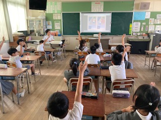 『安全なのはどっちかな?』『どこがあぶないのかな?』…、子どもたちが映像を見ながら考えています。2年生の交通安全指導の授業の様子です。子どもたちは口々に危険な場面や間違えているところを指摘していきます。交通安全について、とてもよくわかっていました。『でも普段からちゃんと交通ルールを守ったり安全に気をつけたりすることができているかな。もう一度よく考えてみましょう。』…先生の言葉をしっかりと聞いている子どもたちです。本当に交通安全には気をつけてほしいです。