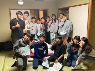 リーダー会議をしました。就寝に向けての準備や気をつけること、布団のしき方や片付け方、明日朝の起床についてなど、リーダーを通じて部屋のメンバーに伝えてもらいます。お願いしますね。今日一日、子どもたちはお互いに協力して過ごすことができていました。子どもたちの笑顔もたくさん見ることができました。明日も活動は続きます。楽しみです。子どもたちはまだ今日の余韻にひたってなかなか眠れないかもしれませんが、一応これで就寝となります。ホームページもこれが最終です。それではみなさん、おやすみなさい。