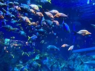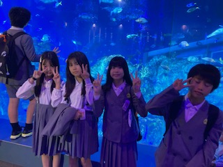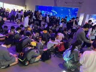 予定通りに子どもたちは鳥羽水族館に到着して、きれいな魚やめずらしい生き物を見つけに旅立っていきました。それにしても館内は小学生や中学生の修学旅行生でいっぱいです。もちろん一般のお客さんもいます。観光バスもおそらく30台以上は止まっていたかと思います。大変ですが、でも大道南の子たちは非常にたくましいので、海の波ならぬ人の大波をかき分けながら、きっと今頃、力強く泳いでいると思います。