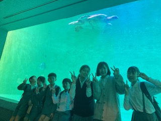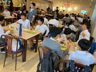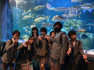 鳥羽水族館は魚や生き物の種類も豊富で展示ブースもたくさんあって水槽の数も多いので、見どころいっぱいで飽きません。一つ一つていねいに見て回っているグループが多かったです。自分が気に入った魚や生き物を友だちに紹介したりもしていました。朝もホテルでしっかりと食べたのですが、ここでも早めの昼食をいただきます。友だちと一緒なら食べる活動も楽しくなってきますね。