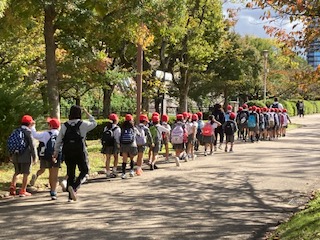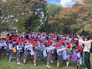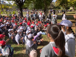 閉会式では今日頑張ってくれたリーダーの6年生のお兄さんお姉さんたちに『ありがとうございました!』とみんなでお礼を言いました。本当にぽかぽか陽気で気持ちよく過ごすことができました。秋が感じられるとてもよい全校遠足になりました。それでは今から安全に気をつけて学校まで帰りたいと思います。