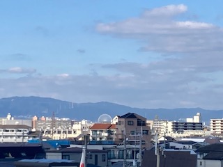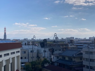 5年生の教室に遊びに行きました。何か記事がないかなと探していると『観覧車が見えるよ』と言ってくれた子がいました。5年生の教室は4階にあるので、晴れている日は遠くまで眺めることができます。まずは豊里大橋、その奥にあべのハルカスが見えるかなと思いましたが確認できませんでした。反対側には…、吹田の万博記念公園にある観覧車がうっすらと見えました。3枚目の写真、確認できるでしょうか。かすかに円形のものが…、地図で調べてみたら直線距離で約8kmでした。眺めがとてもいいですね。
