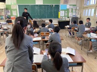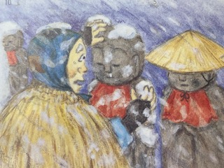 2年生の子どもたちが国語の授業で[かさこじぞう]のお話を読んでいました。かさこじぞうは有名なので子どもたちもよく知っています。心優しいおじいさんが売れなかった笠を帰る道中に雪が降り積もっているお地蔵様にかぶせてあげるお話です。子どもたちは場面ごとにおじいさんの気持ちやおばあさんの気持ち、お地蔵様の気持ちなどを想像して発表していました。その時にみんな、おじいさんやおばあさんになったつもりの話し方で発表していたのがとても面白くてかわいらしかったです。