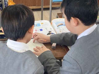 3年生の子どもたちが理科の授業で次に行う実験に向けて予想を立てていました。内容は[明かりがつくとき]です。『豆電球と乾電池をどう線でつなぐと豆電球に明かりがつきます。』と先生が教えてくれました。でもつかないときがあるかもしれません。実験でいろいろなつなぎ方を試して、乾電池の向きやどう線をつなぐ位置などを変えながら、明かりがつくときとつかないときについて調べていきたいと思います。子どもたちは実験で試してみる方法について意見を出し合って予想を立てていました。