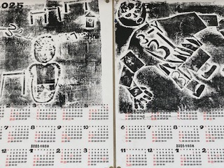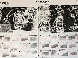 3年生の教室の後ろに子どもたちの作品が掲示してありました。オリジナルカレンダーです。2025年、来年のカレンダーです。紙版画で作成しました。世界に一枚しかないオリジナルカレンダーです。これは貴重ですね。普通の紙版画の作品にとどめることなく、カレンダーにするたあたり、工夫ですね。ぜひお家のどこかに貼ってあげてほしいと思います。子どもたちも喜ぶのではないでしょうか。