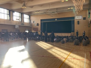 3学期の始業式を講堂で行いました。まぶしい朝日が講堂の窓から勢いよく差し込んできます。気持ちのいい3学期の始まりです。子どもたちには『冬休みの楽しかったことや出来事などをお友だちや先生にたくさんお話ししましょう。』『3学期を目標をもって有意義に過ごし、卒業や進級に向けて大切に過ごしましょう。』『みなさんにとって令和7年がよい年になりますように。』などの話をしました。夢と希望を抱いて、新しい年、令和7年をスタートしてほしいと思います。