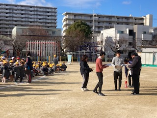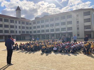 2時間目に地震と津波を想定した避難訓練を行いました。今日は1月17日です。ちょうど阪神淡路大震災が起こってから30年が経ちました。ニュースでは各地での追悼式などが伝えられています。全学級で事前指導を行い真剣に取り組みました。南海トラフ地震の話もしました。身を守るために安全な行動をとること、先生の指示を聞いて落ち着いて行動することなどについても話しました。運動場で集合した後には、津波を想定して4階にも避難を行いました。各ご家庭におかれましても有事の際の行動についてお子さまとお話しする機会を持っていただけたらと思います。