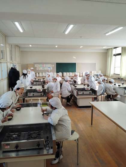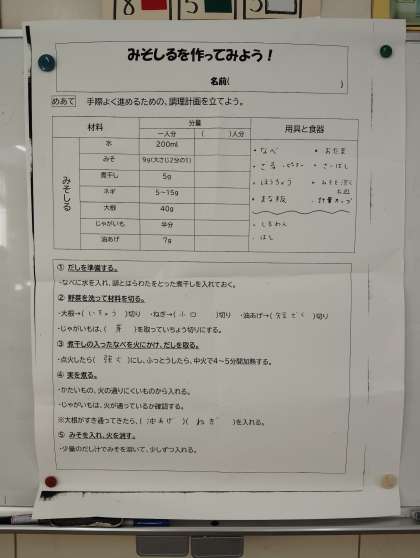 5時間目、家庭科室からよい香りがしてきました。五年生が調理実習でおみそ汁を作っていました。教室に入った時には、完成していて「いただきます」の直前でした。今日はなんと給食もおみそ汁でした!どっちのおみそ汁がおいしいかな?ジャガイモも芯までしっかしりと火が通り柔らかく仕上がったようです。さぁ、このあとはお片付けですよ。使う前より綺麗にお願いしますね。