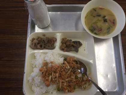 今日の給食は、「さけちらし」「ぞうに」「れんこんのごまじょうゆやき」のお正月の行事献立でした。お正月に食べるぞう煮やおせち料理には、新年を祝う気持ちやいろいろな願いが込められています。
