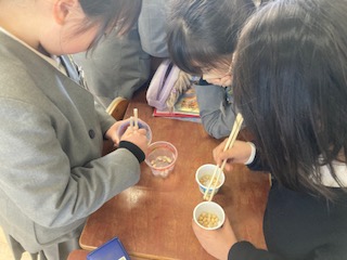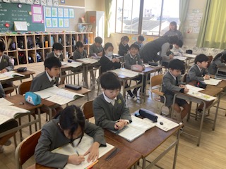 3年生の子どもたちがおだやかな雰囲気の中で算数の授業をしていました。[計算の仕方を考えよう]という単元で、今までに習った内容を組み合わせて解決していく応用編です。自分の考えが合っているか、お互いに確かめ合っていました。さあチャイムが鳴った授業のあとには…[豆運びゲーム]のはじまりです。なんともアナログで見てて気持ちが和みますが、子どもたちはいたって真剣です。タイムキーパーもいます。あまりにもの真剣勝負に思わず見入ってしまいました。