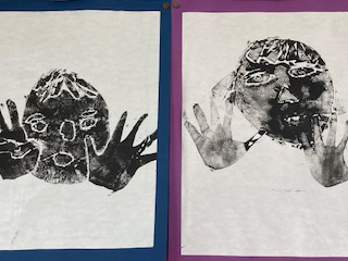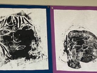 1年生の子どもたちが取り組んだ紙版画の作品が教室の後ろに掲示してありました。テーマは[自分の顔]です。版画と言えば、板を彫る彫刻刀での作品をイメージしますが、低学年を中心とした紙版画もとても趣きがあって雰囲気がいいですよね。あたたかさを感じます。子どもたち一人一人の個性がよく表現されていて、どの子の作品もいい味を出しています。