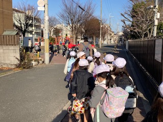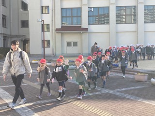 『おはようございまーす!』…2年生の子どもたちの元気なあいさつが芝生広場に響いています。今日は2年生は社会見学で[キッズプラザ大阪]に出かけます。『全然寒くないで』『楽しみにしててん』『いっぱい遊びたい』…子どもたちは出発する前からたくさん話しかけてくれます。『いいな、いいな、一緒に行きたかったな』…そうなんです、今日はお留守番なんです。だから2年生の子どもたちの笑顔で楽しんでいる様子を見ることができなくて残念です。だから門で手を振って見送りました。『気をつけてね、行ってらっしゃーい!』