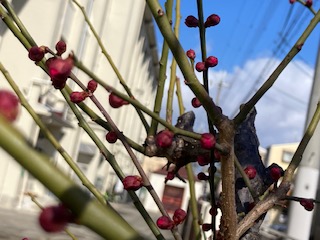 校舎裏に小さな梅の木があります。校舎裏ということもあり、また小さな木が離れて2本あるだけなので、なかなかその存在は知られていませんが、毎年淡い色をした梅の花を咲かせてくれます。見に行ってみると、小さなつぼみが寒さに耐えながらもきれいな花を咲かせようと頑張っていました。春の息吹が感じられますね。今朝の児童朝会でも子どもたちに梅の花の小さなつぼみの話をしました。