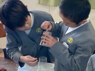 3年生の子どもたちが糸電話を作って遊んでいました。いえ、ごめんなさい、勉強していましたの間違いです。理科の学習で[音が伝わるとき]の実験です。音が伝わるときにものの様子はどうなっているのかを調べています。糸電話で話しているときに糸にそっと触れてみると糸がわずかに震えていました。糸電話で話しているときに糸をつまんでみると声が聞こえなくなりました。不思議だね。子どもたちはこれはどういうことかなと首をかしげていました。うーん、どうしてかな。