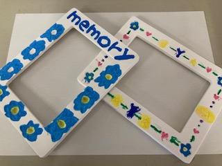 6年生の教室の後ろのロッカーの上に、木の板で囲った四角い枠が並べてありました。はじめは『これ何かな?』と思っていたのですが、[memory]の文字でピンときました。写真たて、フォトフレームです。まわりの部分を彫刻して簡単な模様をつけたり絵の具で着色したりして飾り付けています。小学校での最後の図工の作品ですね。中には何か思い出や記念になるような写真を入れて、家の机の上にでも置くといいですね。
