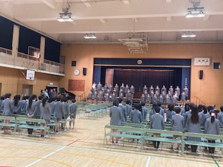 本日10時より卒業式の予行練習を行いました。当日の時程とまったく同じ通りに進めていきました。私語もせずに張り詰めた緊張感の中、6年生の子どもたちが入場を始め、それを5年生の子どもたちが大きな拍手で迎えます。大きな返事や卒業証書の受け取り方、門出の言葉や合唱などもこれまでにたくさん練習してきました。その練習の成果を今日は十分に発揮することができていたと思います。最後のまとめの場面では、担任の先生たちの熱い思いが語られました。そして先生も子どもたちも18日の卒業式は、みんなで素晴らしい卒業式にしようという気持ちを改めて強く胸に感じていました。あとは当日に向けて体調を整えるだけです。大きく胸を張ってしっかりと卒業証書を受け取ってほしいと思います。この土日の過ごし方について安全に気をつけるように、ご家庭でもお話ししていただきますようお願いします。