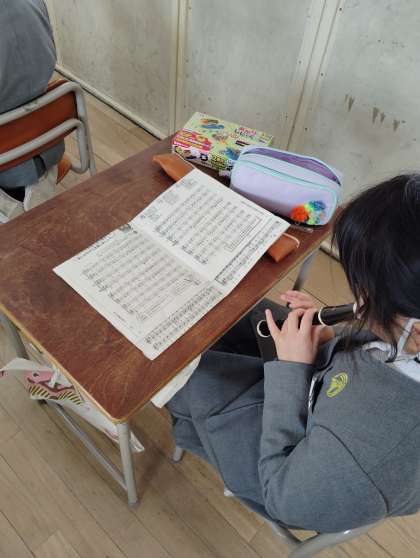 3時間目に3年生の教室からリコーダーの音色が聞こえてきました。どうやらリコーダーのテストの練習をしているようです。先生の元へ行き聞いてもらっている児童もいました。3年生から始まったリコーダーも1年間でとても上手になりましたね。
