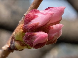 校庭の桜のつぼみがふくらみ、今にも咲きそうです。