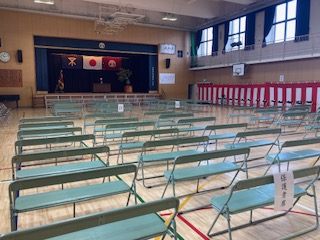 ・保護者の皆さまには講堂へはスリッパ等の上履きで入っていただきますので、各自必ず上履き等をご持参いただきますようお願いいたします。その際脱いだ靴を講堂へ持って入るためのビニール袋等をご用意ください。