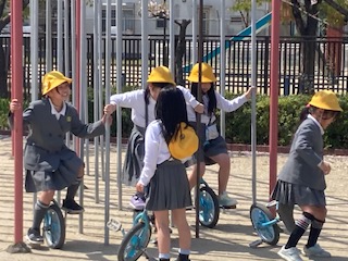 春のぽかぽか陽気に誘われて、休み時間にはたくさんの子どもたちが運動場に出てきました。子どもたちの明るく元気な声が運動場に響いています。やっぱり子どもたちには運動場が似合います。鬼ごっこをしたりボール遊びをしたり、一輪車や鉄棒、ジャングルジムも人気です。一つ上の学年へと進級し、子どもたちの気持ちも今日の青空のように晴れ渡っています。