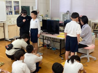 新しい学年になって、どの学年の子どもたちも身体測定を行っています。今日は5年生です。はじめに保健室の先生のお話を聞きます。いつも保健室の先生は工夫を凝らして、子どもたちが健康な生活を送るために役立つお話をしてくれます。今日のテーマは[朝ごはんの3つのスイッチ]と[よく眠るためのツボ]でした。お話を聞いたあと、順番に測定していきます。みんな5年生になってまた少し大きくなったみたいです。顔つきもお兄さんお姉さんの顔になってきました。