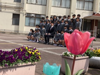 今日は朝から春の日差しが感じられるよい天気となりました。1年生から6年生まで各学級ごとに学級写真を撮影しました。先生たちは先ほどカメラマンに自分たちが指導されたのと同じように、子どもたちに表情や姿勢を指導したり、細かな立ち位置を指示してきれいに並べたりと頑張っていました。晴れやかな表情をして写っている子どもたちの様子に微笑ましく思い、またこれから始まる一年間への期待がふくらみました。(写真は1.2.3年生)