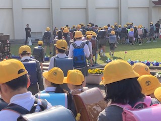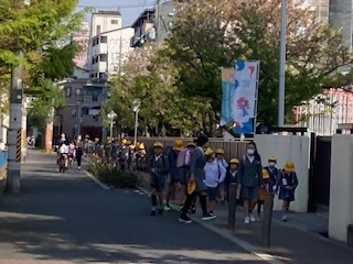 昨日の5時間目に[地域子ども会・集団下校]を行いました。改めて新年度の班長さんやメンバーを確認しました。それを受けて今日から[集団登校強化週間]を行います。集団登校してきた子どもたちは芝生広場に立ち寄り、担当の先生に報告をしてから教室に向かいます。本校では安全のために集団登校を行っています。中には寝坊したり朝の準備が間に合わずに一人で遅れてくる姿もよく見かけます。もしそのような状況がありましたら、子どもたちが規則正しく安全に登校できますよう、各家庭におかれましても声かけをよろしくお願いします。