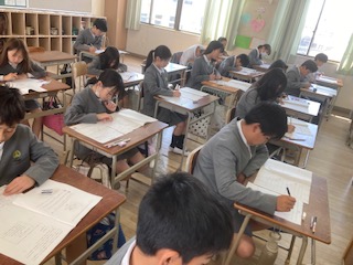 本日午前中に6年生の子どもたちを対象に[全国学力・学習状況調査]が行われました。教科は国語、算数、理科の3教科です。今日4月17日に日本全国の小学校6年生児童が一斉にテストを受けています。教室をのぞいてみると、子どもたちは集中力を高めて真剣な眼差しで取り組んでいました。今までに身につけた力を十分に発揮して、最後まであきらめずに頑張っている姿が見られました。すべてのテストが終わると『やっと終わったー』『めっちゃ疲れたー』『ひさびさに頑張ったわー???』などの言葉とともに安堵の表情が広がっていました。おつかれさまでした!