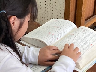 4年生の子どもたちが国語の授業で漢字辞典の使い方を教えてもらっていました。漢字辞典は漢字の意味や読み方、成り立ち、筆順、例文などを調べることができます。とは言っても最近ではインターネットの普及により国語辞典も同様ですが、普段から常に手元に置いて活用することは減ってきているように感じます。音訓索引(読み方)、部首索引(部首)、総画索引(画数)の3つの調べ方があります。子どもたちには自分の手で根気よく調べることの良さを感じてほしいと思います。