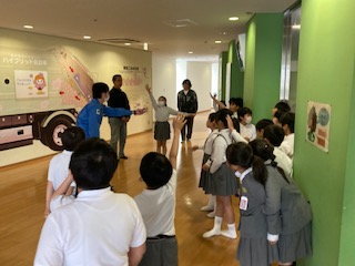 立派なシアタールームもあってびっくりしました。環境問題についてのアニメ映像は子どもたちにもとてもわかりやすく、今後はみんなが地球規模で考えて取り組んでいかなければいけないことがよくわかりました。画面を見ながら環境クイズにも答えることができ、子どもたちは喜んで正解ボタンを押していました。充実した中身も盛りだくさんの社会見学でした。今日の社会見学で学んだことを、ぜひ学校での学習に役立ててほしいと思います。