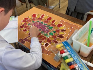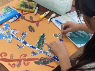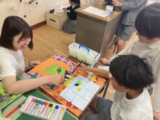 4年生の子どもたちが図工の作品で絵画に取り組んでいました。いろんな形や色…、パッと見た感じでは奇想天外で何を描いているのかわかりませんでした。奇想天外は[普通では思いもよらない奇抜なこと]という意味です。まさに子どもたちの発想力に頼る部分が大きいです。テーマを尋ねると[不思議な花]でした。なるほどね。テーマを聞いて納得しました。子どもたちの発想を生かした不思議な花がいっぱい咲くのが楽しみです。