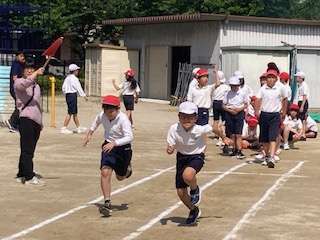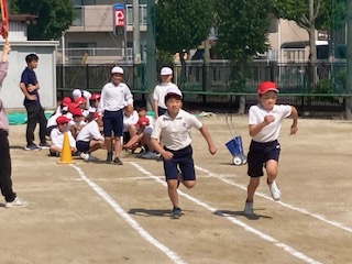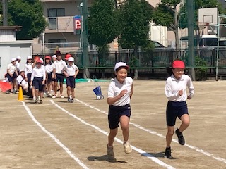 5年生の子どもたちが50m走の記録を計っていました。正面を向いて腕をしっかりと振り、脚をできるだけ高く、そして遠くへと…。いろんなことを意識しながら、50mを走り抜けていきます。高学年になって子どもたちの走る姿にも力強さやたくましさが感じられます。一番速い子の記録は8.19でした。どの子たちも自分の力を振りしぼって全力で最後まで走り切る姿がとても輝いて見えました。