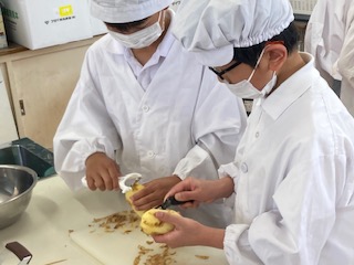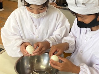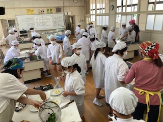 午前中の3.4時間目に5年生の子どもたちが家庭科室で調理実習をしました。家庭科の学習は5年生から始まります。自分たちの生活や環境に目を向けて暮らしのための知識や技能を身につけたり、よりよい環境づくりのために工夫や改善を図ったりしていきます。今日は初めての調理実習なので子どもたちもとても喜んでいました。今日作ったのは[ポテトサラダ]と[小松菜のおひたし]です。じゃがいもの皮をむいたり、たまごのからを取ったり…些細なことがとても楽しそうでした。