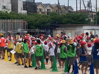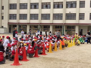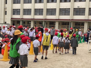 今日は朝の児童集会でキッズ班活動(たてわり班活動)をしました。新しいメンバーになって顔合わせは先日行っていますが、運動場で並ぶのは初めてです。だから6年生のリーダーが1年生を迎えに行って自分の班に一緒に並ばせてあげます。今日はその後にみんなで○×クイズをして楽しみました。これから集会活動だけでなく、いろいろな学校行事を共にする仲間なので仲良くしていってほしいと思います。