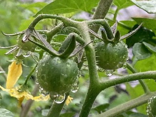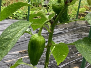 今日は朝からしっかりと雨が降っています。子どもたちも色とりどりのかさをさして登校してきました。学習園にあるなかよし学級の畑をのぞいてみると、子どもたちが植えた野菜の苗が育ち、小さな実ができ始めていました。ミニトマトとピーマン、ナスです。まだまだ小さな実で数も少ないですが、これから大きく育っていくと思います。今日は雨なので見ることができませんが、うれしそうに植えていたなかよしの子どもたちの喜ぶ姿が目に浮かびます。