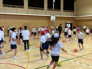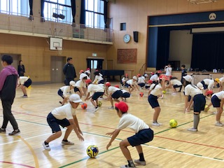 6年生の子どもたちに[夢授業]を行いました。夢授業は、トップアスリートとの交流を通して夢を育み、スポーツへの興味関心を高めることをねらいとしています。今日はセレッソ大阪のコーチ陣の方々に来ていただきました。サッカーは本校の子どもたちにも好きな子が多く、ミニゲームになると講堂内に応援の歓声が巻き起こって、一進一退の攻防にちょっとした興奮状態になっていました。みんなで一緒に体を動かして、楽しいひとときを過ごすことができました。これから一人一人、夢を探してほしいと思います。