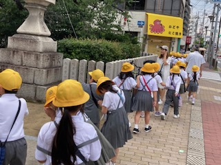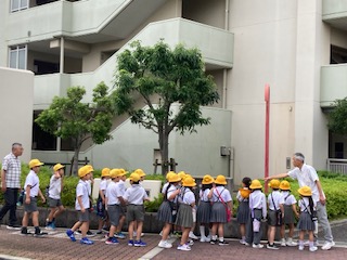 2時間目に2年生の子どもたちが生活科の学習で[校区たんけん]を行いました。自分たちの住んでいる町を実際に歩いて、何があるのか、どんな施設やお店があるのか、などを見て回ります。そして気になったことや知りたいと思ったことなどをまとめて、2学期にはそれぞれの場所にインタビューをして回る予定です。2年生の子どもたちはまだ小さいので自分の家の周辺以外はあまり知らない子も多いみたいでした。キョロキョロと辺りを見渡しながら歩いている子がたくさんいました。