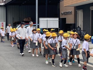 ただ校区を歩くだけなんですが、2年生の子どもたちのテンションはとても高かったです。『あーここ来たことあるー!』『この店知ってるでー!』『いつもこの公園で遊ぶねん』『あれ僕の家やで』『ここ私のおばあちゃんの家ー』『この家に犬おるねんでー』などなど…、一人一人がずっとしゃべっています。歩きながらずっとしゃべっているのです。しかもそれに対して誰も『ふ〜ん、そうなんやー』とか答えません。それぞれが言いたいことを言ってるだけで、その様子が見ていてとてもおもしろかったです。とてもかわいい2年生とのお散歩でした。