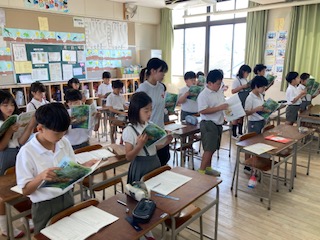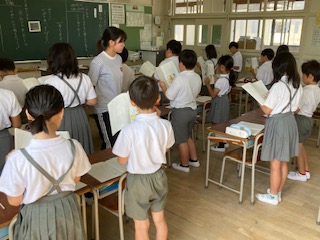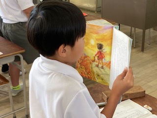 3年生の子どもたちが国語の教科書に載っている物語を読んでいました。読みながら登場人物の性格や気持ちを想像していきます。例えば全員で一斉に音読したり、句読点の○ごとに順番に読んだり、先生が読み聞かせをして目で読んだり…いろいろな読み方がありますが、今日は[一人読み]をしていました。一人読みはそれぞれがそれぞれのペースで読んでいき、子ども自身が主体的に本の内容を理解し、集中力や読解力を高めることが期待されます。しっかりと本と向き合っている子どもたちの横顔がとてもいいなと思いました。