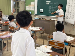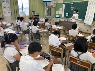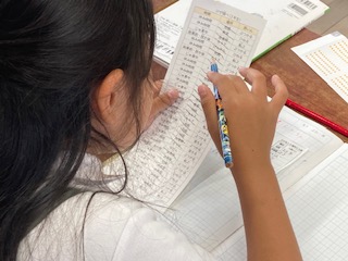 3年生の子どもたちが算数の授業で[棒グラフ]の勉強をしていました。先生から[どこで][何人]の子どもがケガをしたのかという記録(データ)を配ってもらいました。子どもたちはこの記録(データ)を整理してまず表に書き直した後に、次は棒グラフに書き表していきます。棒グラフだと数の大きさが多いか少ないか一目でわかります。なるほど便利ですね。外は雨が降っていますが、3年生の子どもたちも頑張っています。