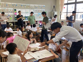 2年生の国語の研究授業の様子です。動物園のおりの中の動物を紹介する看板の書き方と動物園の動物たちを紹介するガイドブックの書き方はどうして違うのか…、なかなか難しい問題です。実際には目的や場面、用途によって違うのですが、2年生の子どもたちなりにこの問題を解決しようと友だちとの交流の中で積極的に対話しながら自分の考えを持とうと頑張っていました。見ている先生たちも自分ならどんなふうに授業を組み立てて展開していくだろうかと少し頭を悩ませる授業でした。放課後には討議会を行っていきます。