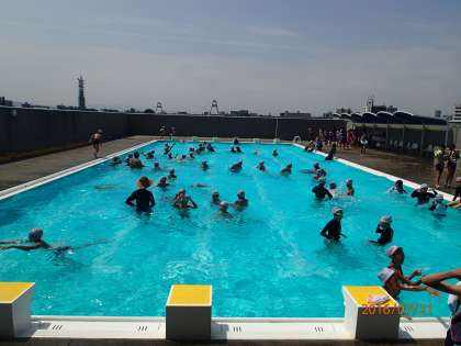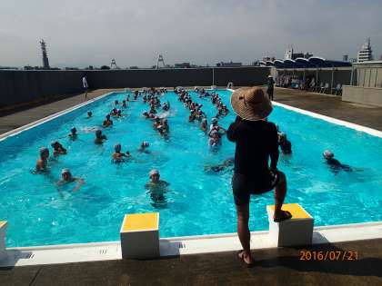 今日から29日までの平日がプール開放です。初日はつきささるようなぎらぎら太陽のもと、絶好のプール日和です。一昨日の水の入れかえのこともあり、プールの水もピッカピッカ、水慣れの後は、体育の授業とはちがう自由時間がたっぷりあるプールで子どもたちも大はしゃぎです。