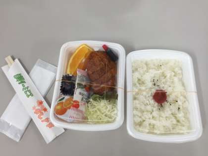 1日目のお昼はトンカツ弁当です。みんなお腹を空かせていて、とても美味しくいただきました。