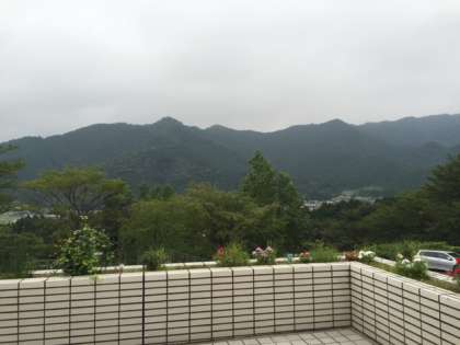 5年生の林間学習の2日目は山が少し霞む涼しい朝を迎えました。今日1日の天気予報では、雨が降るかもしれないとのこと。このままの天気を祈っています。子どもたちは、6時から起きて、朝の用意をしています。みんな元気です。