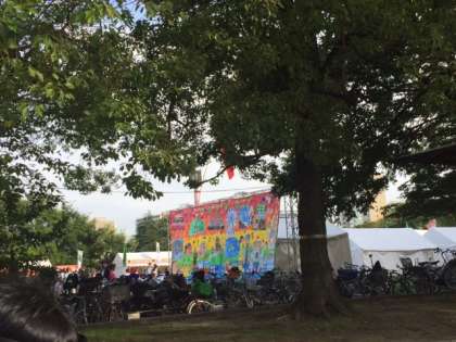 10月8日(土)と9日(日)に難波の宮跡の中秋名月祭の会場に6年生が描いた大絵画が、展示されました。広い会場の入り口のところに飾っていただきました。子どもたちが力を合わせて描いた作品を多くの方にご覧いただくことができてよかったです。