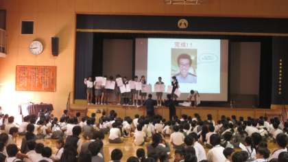 今日の朝の児童集会では似顔絵ゲームをしました。