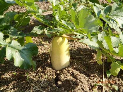 確かに今日は寒いですね。学校の桜も緑の葉っぱから紅葉になっていました。又、農園では少し辛い夏大根ではなく、秋冬大根が地中から白い身をのぞかせています。管理作業員さんは、来年の春まで花を咲かせる花の植え替えをしていました。