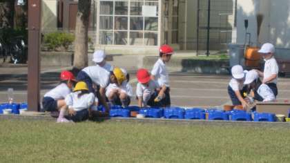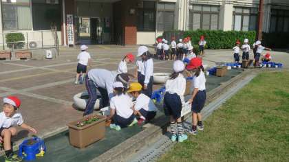 暖かい日差しの中、1年生がチューリップの球根を植えました。大きなプランターや小さい鉢に、たくさんたくさん植えました。子どもたちは土をさわりながら、「何色の花が咲くのかな」「私は赤がいいな」などと話しながら、笑顔いっぱいで活動していました。春には色とりどりのチューリップが小学校の芝生広場をはなやかに飾ってくれると思います。1年生たちがしっかりとお世話をしてくれます。